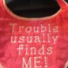 Adult Bib in purple with black trim and slogan “I wish I could but don’t want to” – two colours purple or lilac with lilac trim (smaller writing)