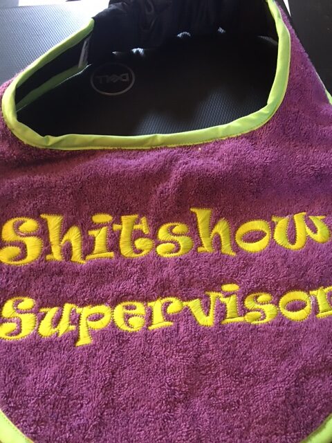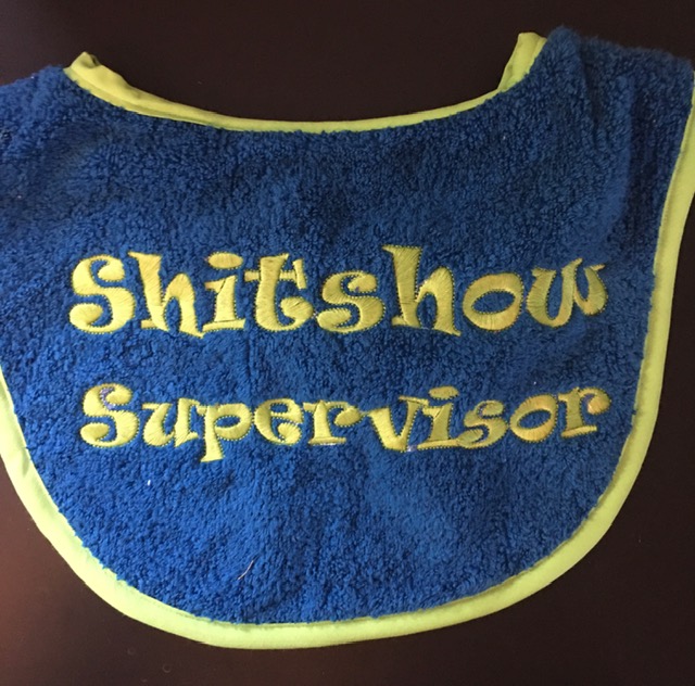 Adult Bib in two colours with slogan “Shitshow Supervisor”
